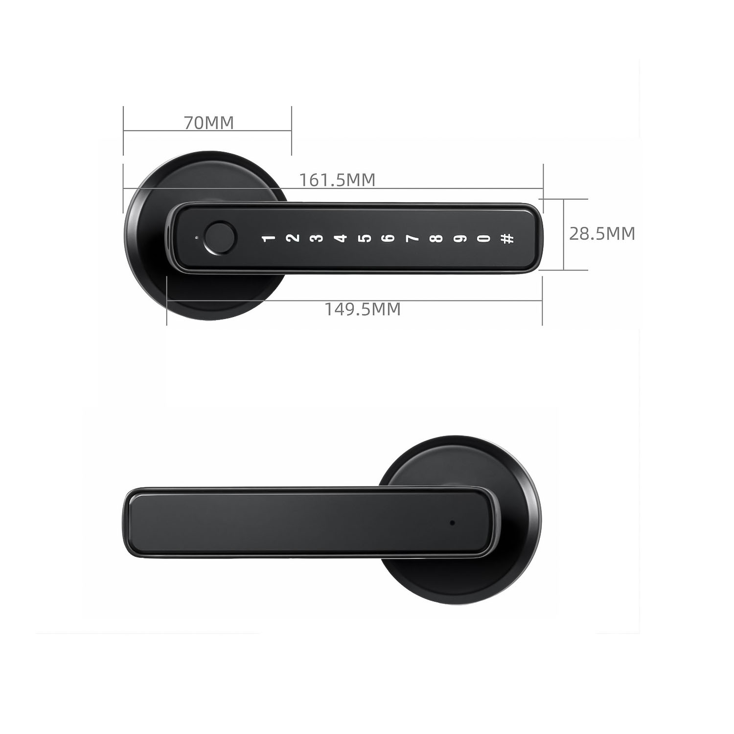 - Способ разблокировкиОтпечатки пальцев, пароли, механический ключ, смарт-приложение Tuya, карта