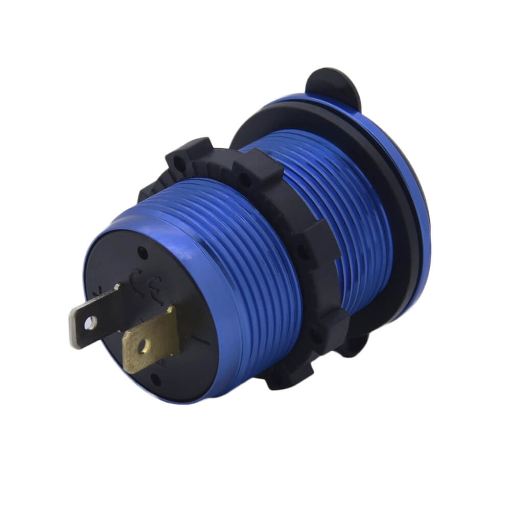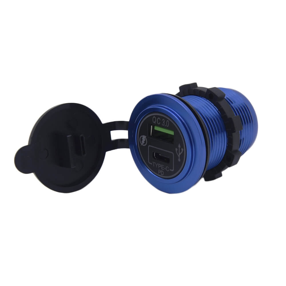 Устройство для зарядки различных гаджетов от бортовой сети автомобиля. Устанавливается в автомобильную панель и фиксируется специальной гайкой. На передней поверхности устройства расположены два интерфейса – USB 3.0 и USB type C. Разъемы прикрываются пластиковой крышкой для защиты от пыли.
